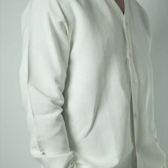 Off-White Linen V-Neck Button Shirt